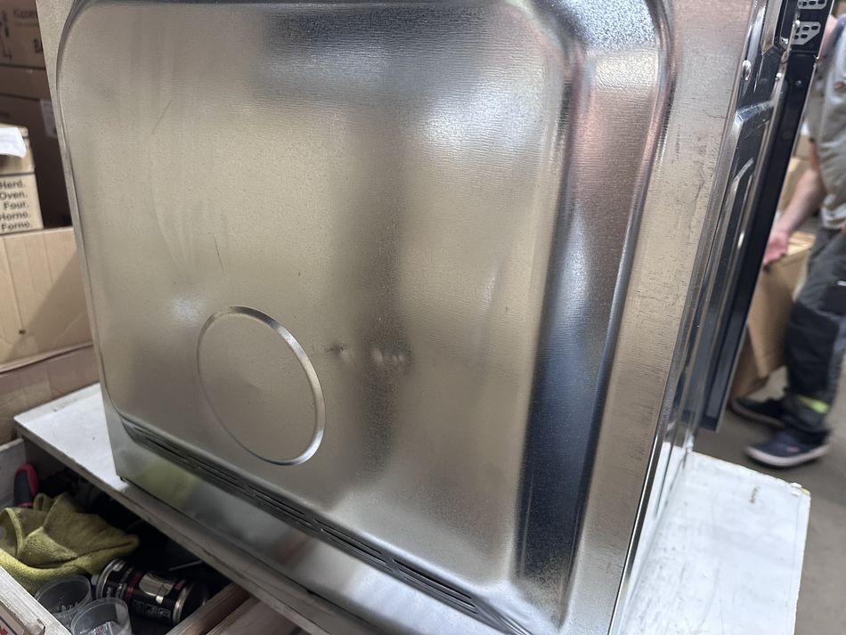 Упаковка заводская мятая. На задней стенке прибора присутствуют точечные вмятины. На правой и левой боковых стенках в верхних углах присутствует излом.